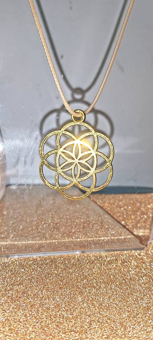 Collier Graine de vie dorée, les 7 cercles de la création.